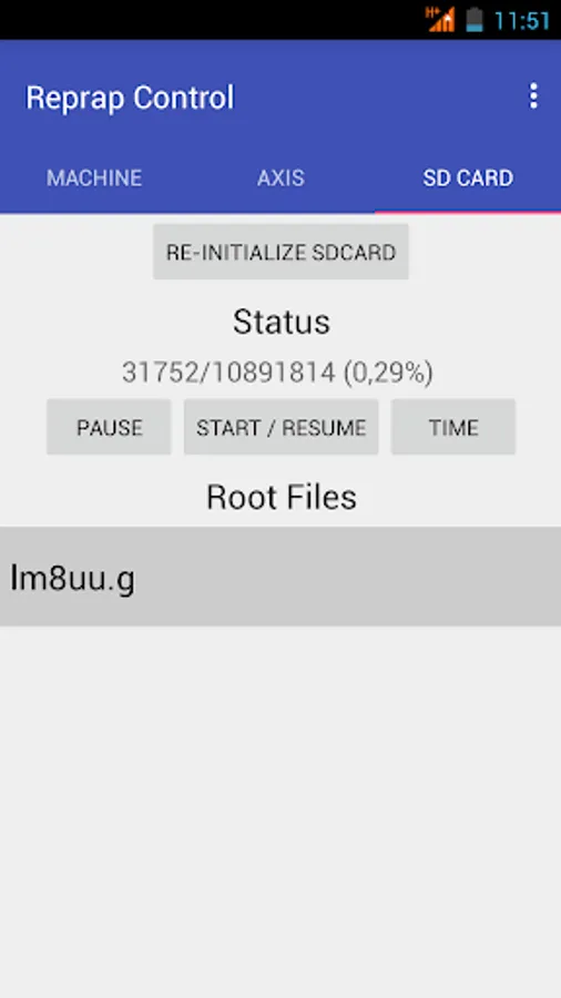 - Start/pause file from SD card