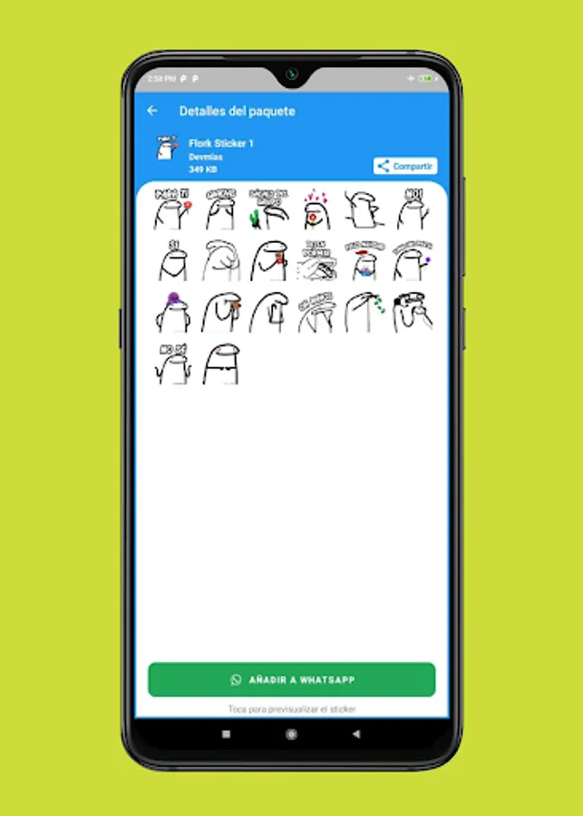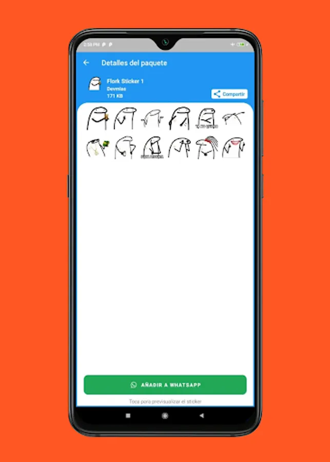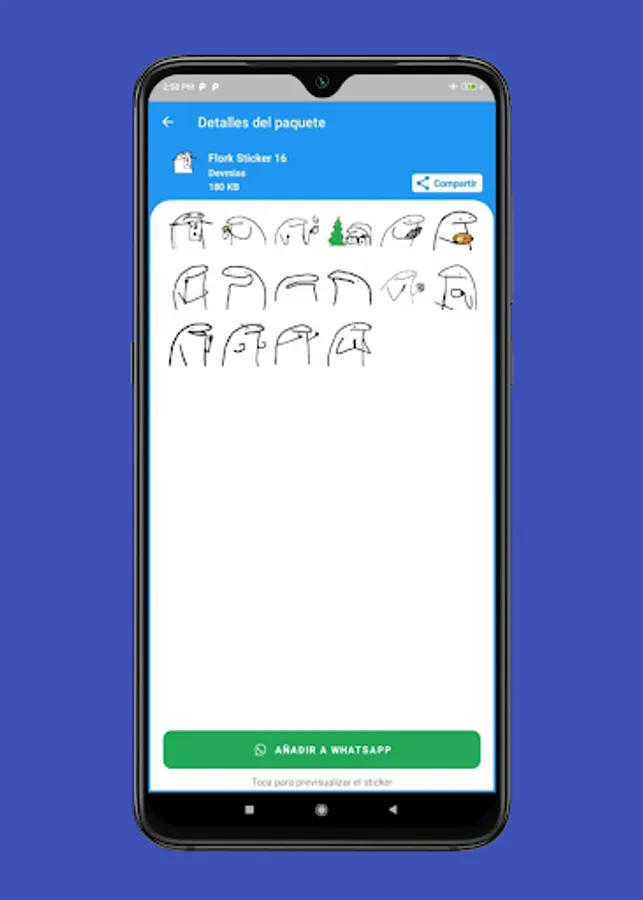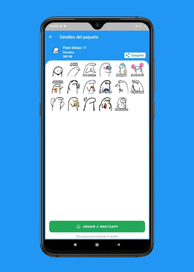 Customize your WhatsApp conversations with Flork's collection of stickers! Express your feelings with fun Flork designs that will add a different touch to your chats. Download the app and enjoy hundreds of original and colorful stickers, perfect for any occasion. Our collection is constantly updated with new designs, so you'll always have fresh options to share with your friends and family. Share the excitement of Flork in your WhatsApp conversations with our Flork stickers!