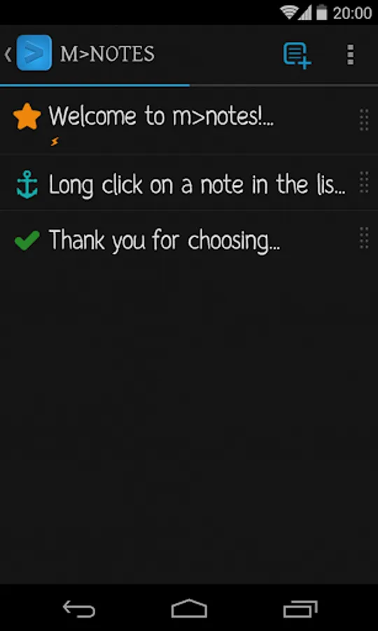m>notes features great artistic font, fast and intuitive swipe navigation, dropbox backup, drag and drop reorder of notes, colorful icons. Make and share your notes easily with m>notes.
