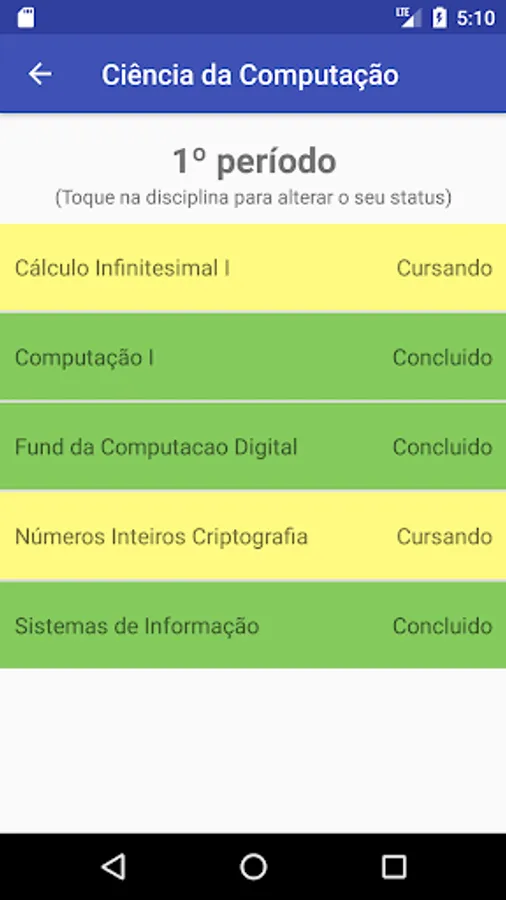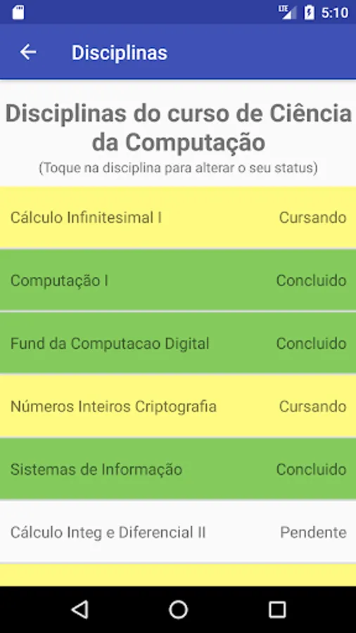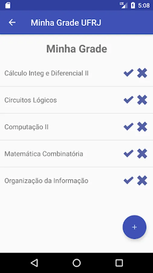 The My Grade is a tool to assist students of UFRJ from various undergraduate courses.Some of the features allow you to track how many matters have been completed, completion percentage, missing subjects and the full grid of your course per term. You can also check the six-month schedule and save reminders of evidence, work or any other activity.The availability of courses is made collaboratively by university students. In the application, there is information on how to collaborate and submit their course if it is not already registered.The application was developed by DevMob UFRJ, extension group in mobile development, Department of Computer Science, for free, for the academic community.