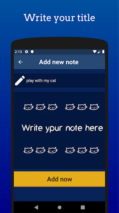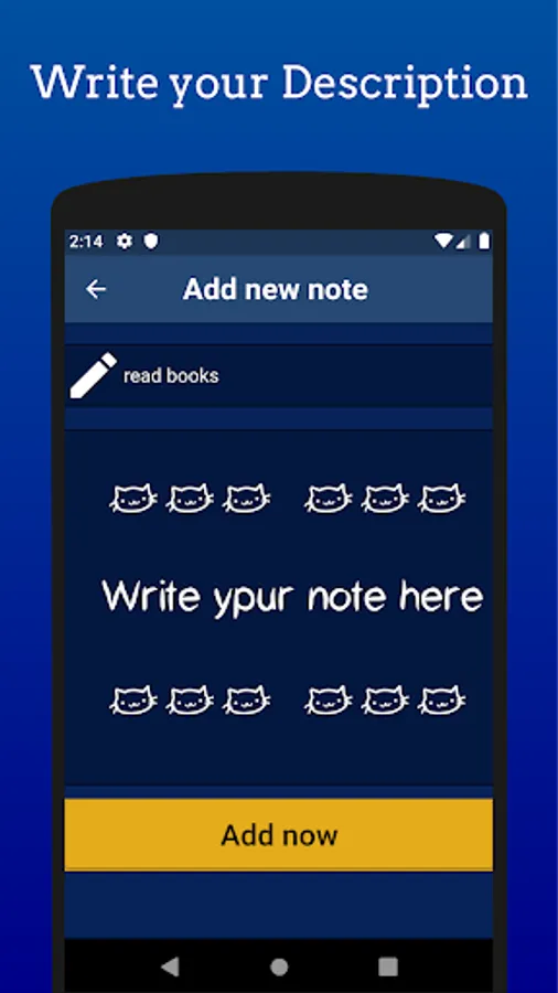 cat notepad is tool allow you to create notes in your phone for you and your cat and you can write in note what you want to do and that will help you to manage your time and be more productive and also help you to take care to your cat