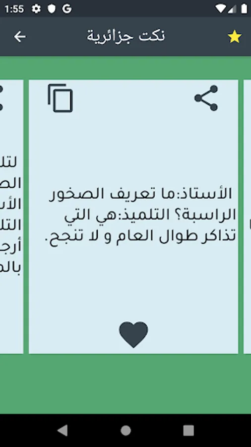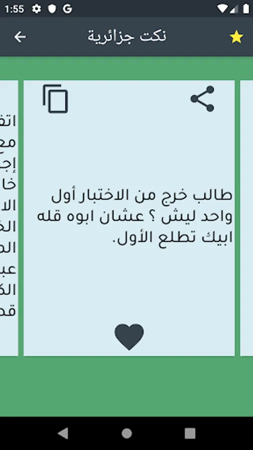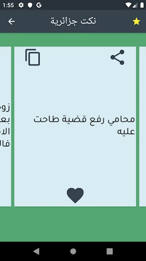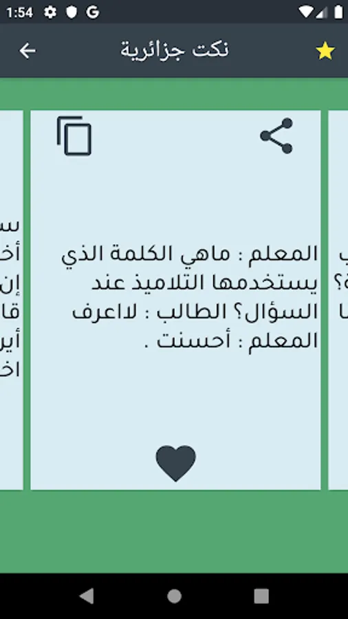 Algerian jokes is an application that includes a large number of jokes very funny with the aim of entertaining to spread the smile to our friends and your friends joy and fun and all of these 100% Algerian jokes application contains more than 300 funny jokes and is available on the jokes very respectable where any Algerian can see it from Party everyone adults and even young people will like this application without a doubt laugh from your heart and forget your worries with the sweetest jokes application.