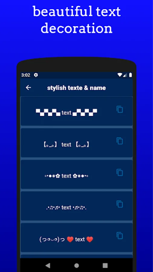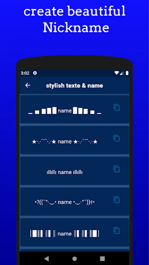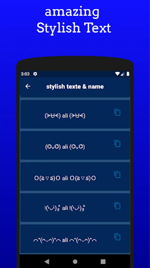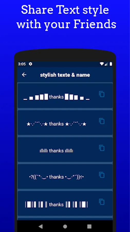 stylish text & name app is very easy and simple to use and you will love to use in your everyday and will help you to stylish texte and Just one click on a style to copy it to the clipboard and paste it anywhere you want.
