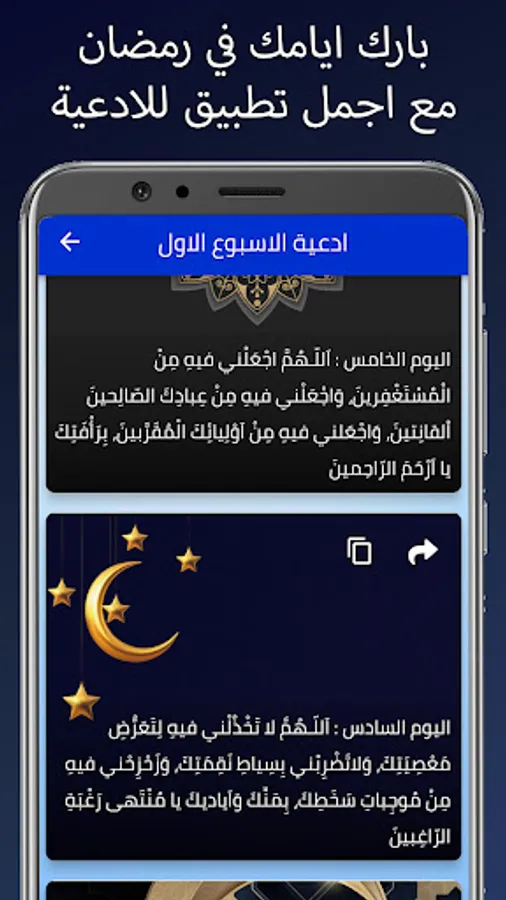 It is a free application that contains supplications for the blessed month of Ramadan. You will get the supplication of the first day of Ramadan to the supplication of the last ten days of Ramadan. Bless your fast with a prayer to enter Ramadan or a prayer before breakfast. The application contains Ramadan supplications written and serialized every day, a short supplication easy to memorize that gives you comfort and a sense of the spiritual atmosphere in the blessed month of Ramadan. The application is very easy for the user. We have divided Ramadan supplications into four weeks, in order. Each supplication is for the special day of this month. Just download the application and enjoy.