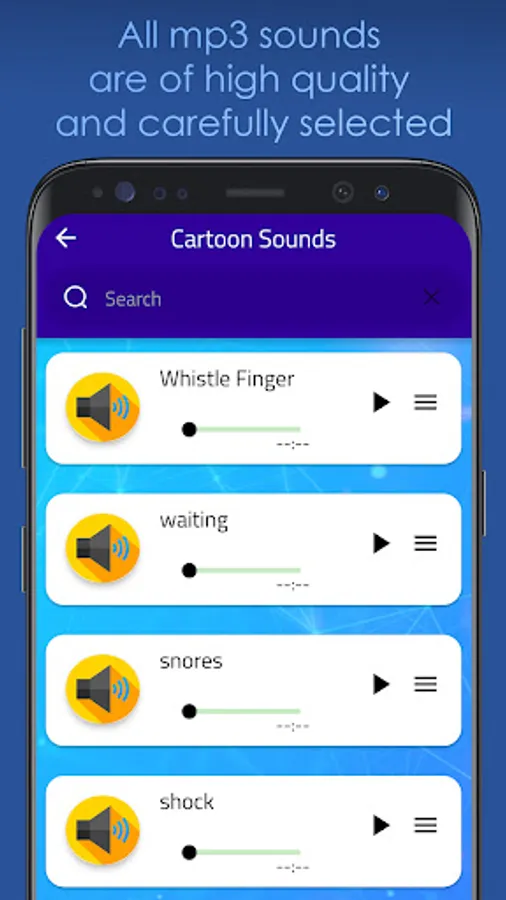 The application provides many different sound effects including running, Scooby-doo, funny cartoon sound, walking, classic cartoon sound, falling cartoon sounds and alarm sounds, and many more sounds within the application. It is free to download and use.