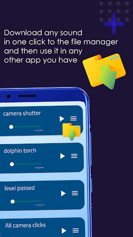 - Download any audio with one click to your phone's file manager and then use it later in any video editing application or any other application