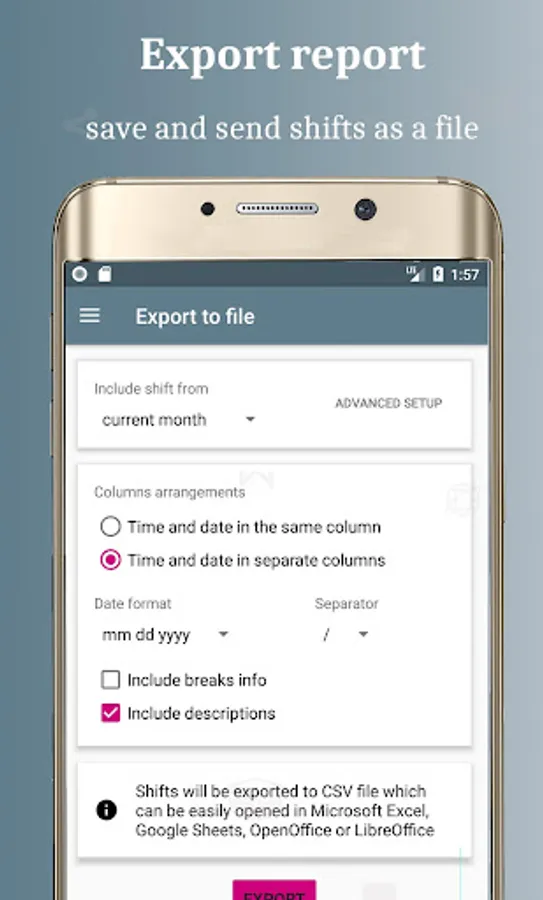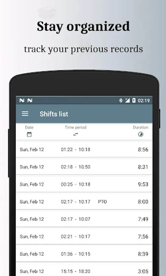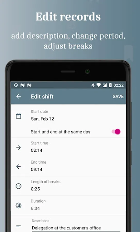 You can also choose to manually manage your shifts - adjust start and end of work, add breaks and notes.