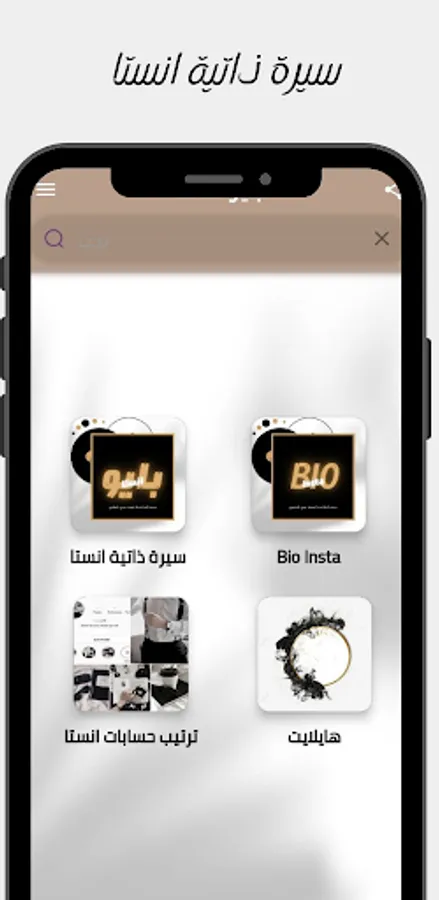 Now, let's get acquainted with what the Bio Insta application offers in a brief way. It presents you with an Insta biography, Insta highlights, pictures for arranging Insta accounts, and Bio phrases, including what is arrogance, self-confidence, love, and judgment.