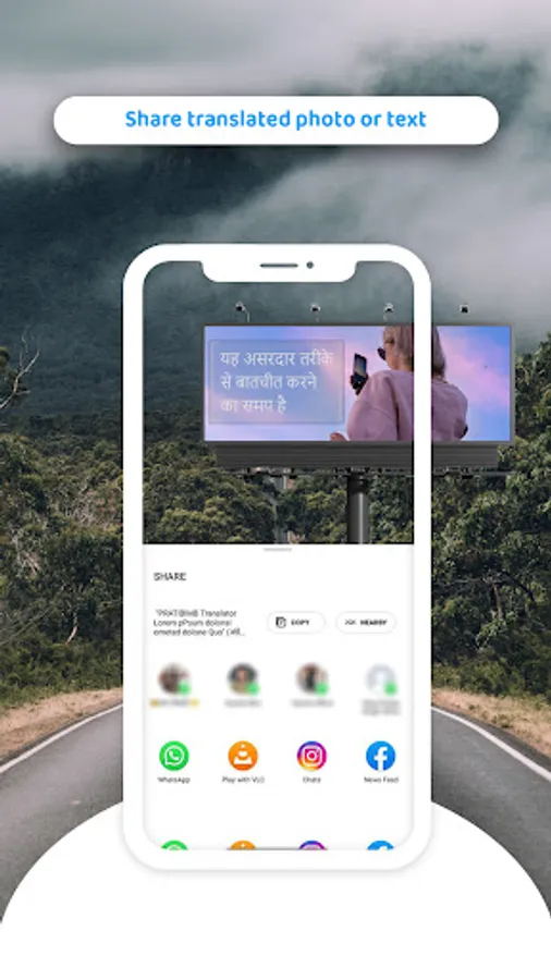 Pratibimb uses OCR and Machine Translation (powered by Devnagri ) to read the contents of the image, and then use the text to convert it to any language and show it in the same place in the original image.