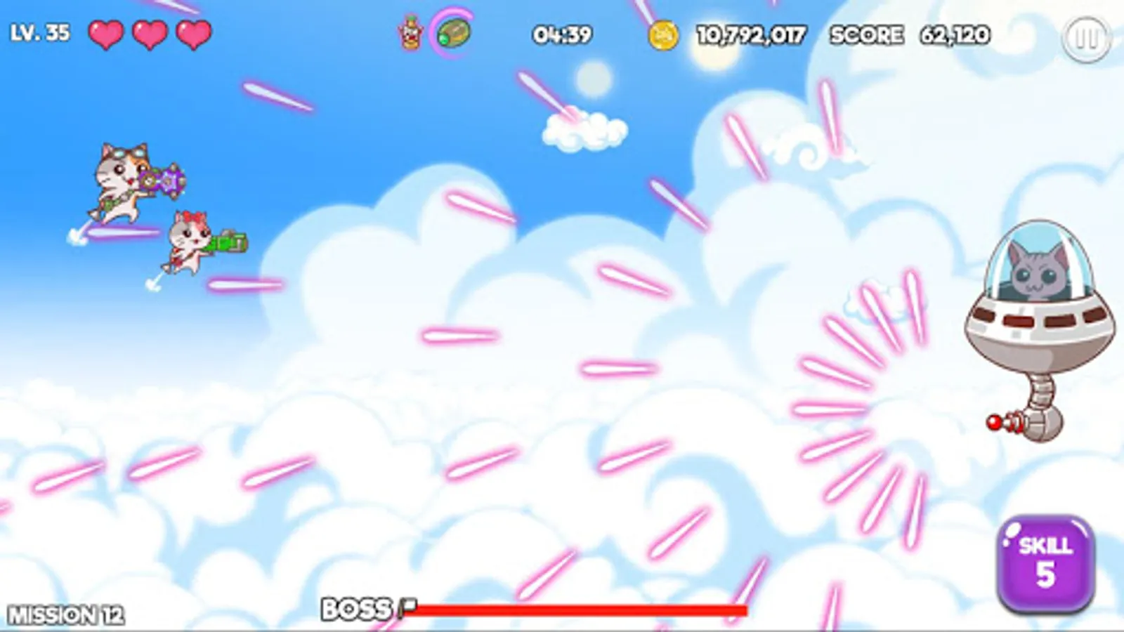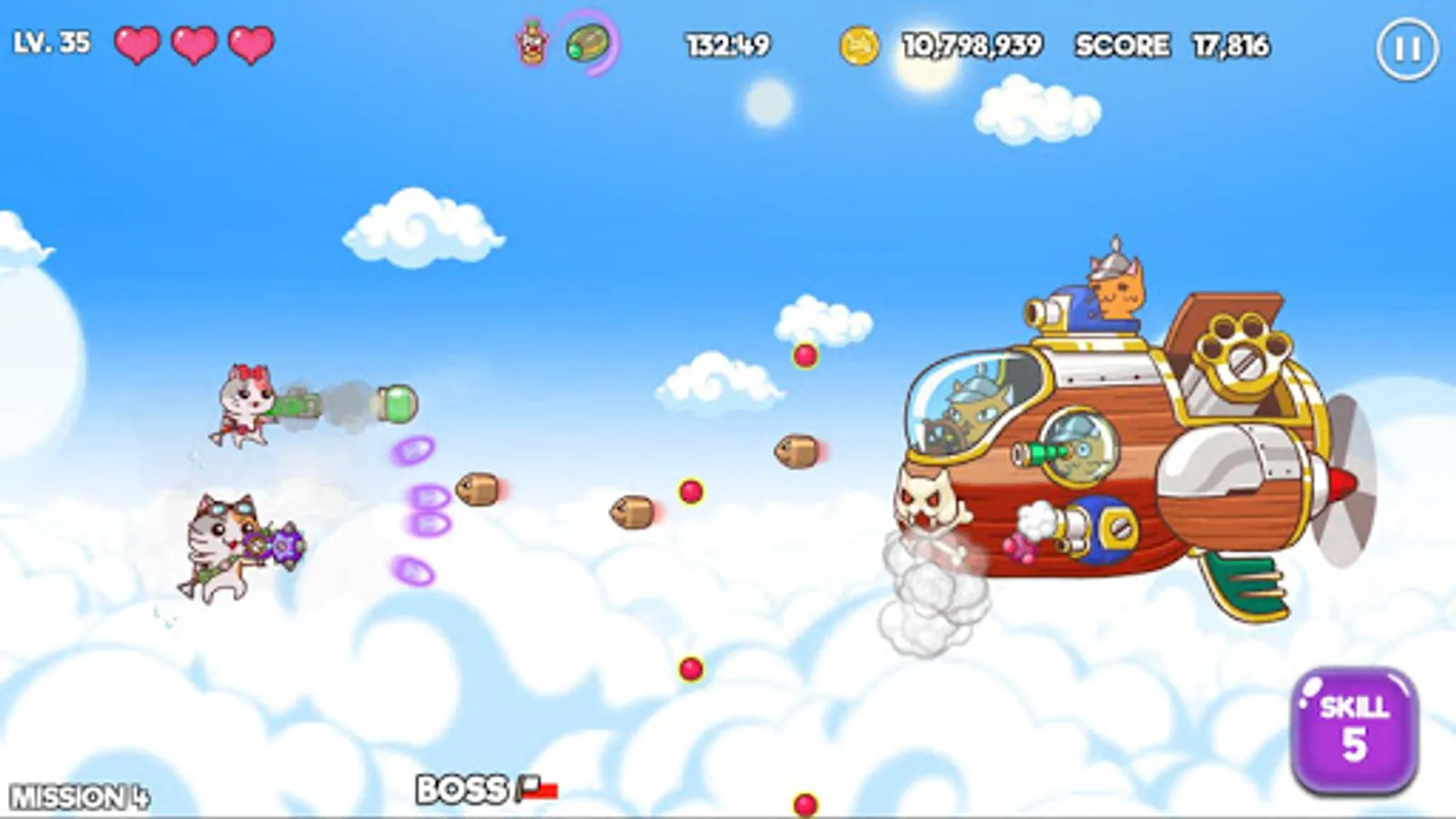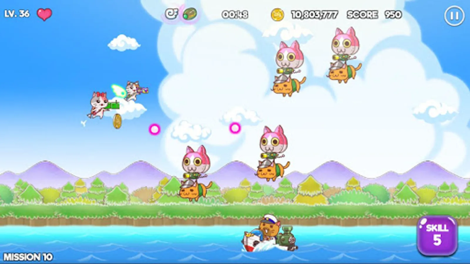 2 Nyan Try one Jolo using a variety of skills and items to organize the leader and the wingman defeating various bosses in 30 stages consisting of pastel tones.