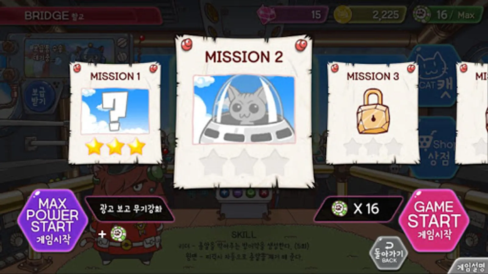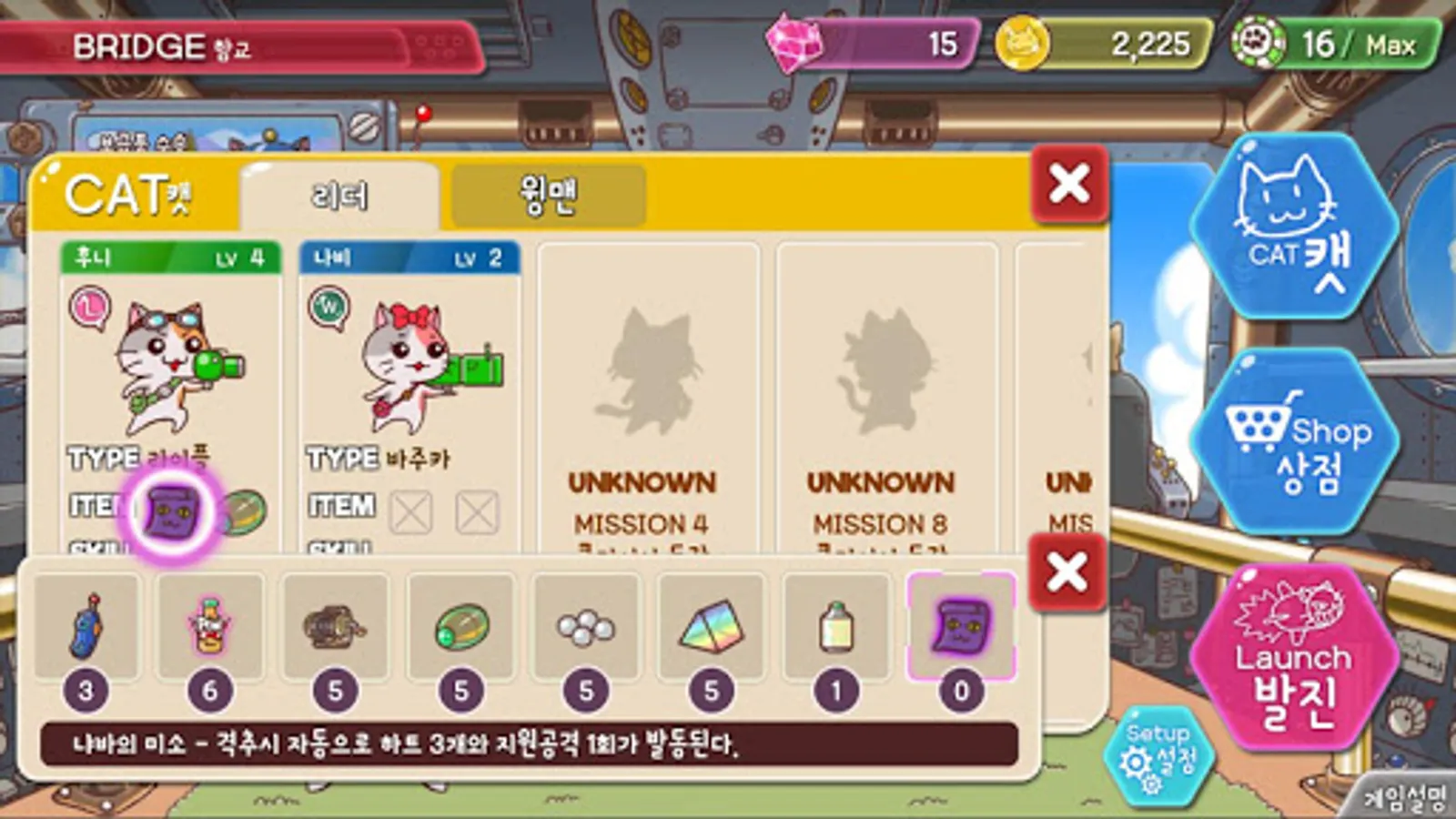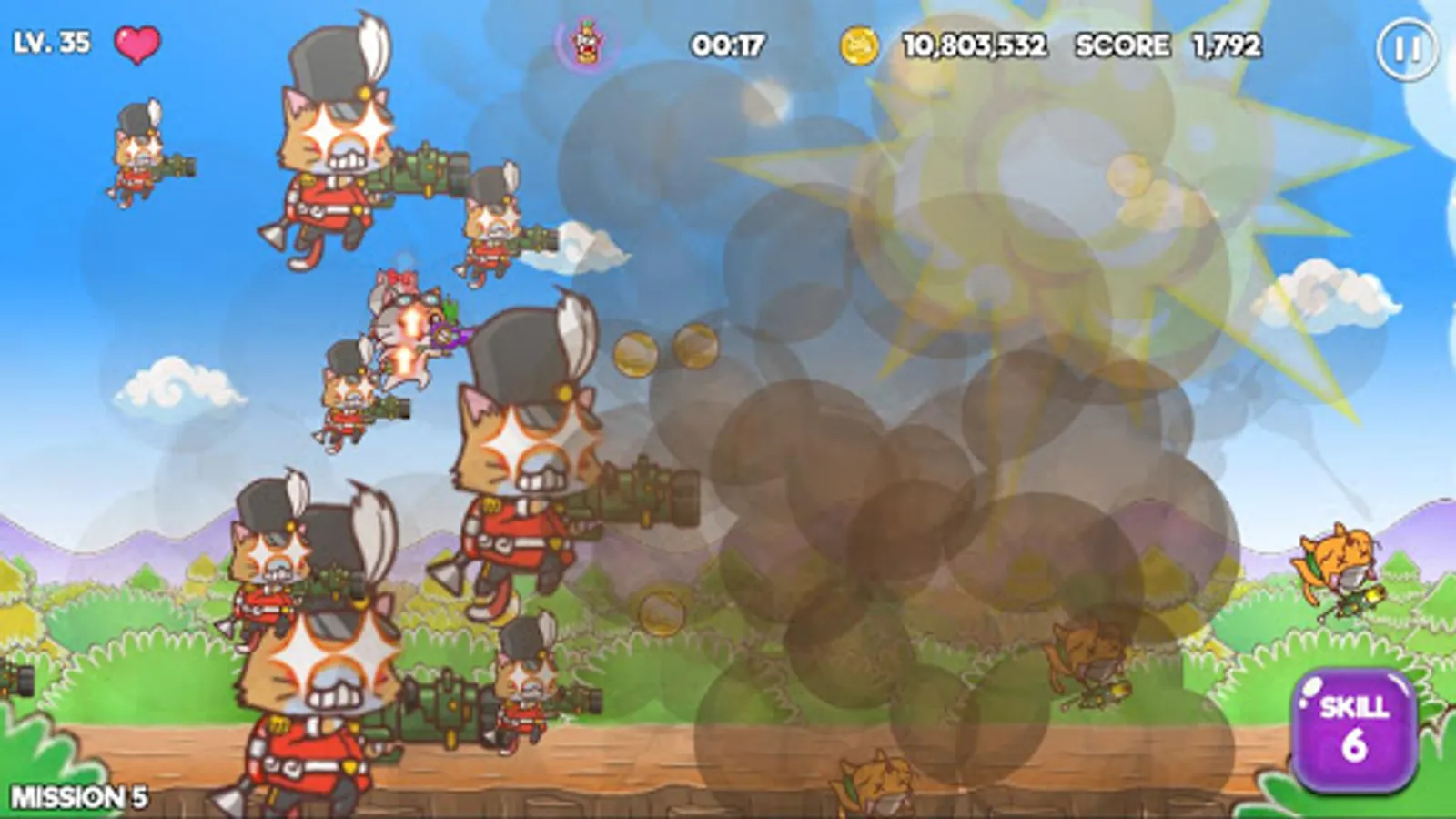 2 Nyan Try one Jolo using a variety of skills and items to organize the leader and the wingman defeating various bosses in 30 stages consisting of pastel tones.