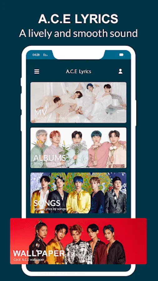 A.C.E Lyrics, MVs & Wallpaper is a new and unique 3-in-1 application. This application integrates a viewer to view the lyrics of A.C.E's hot hits songs offline. You can listen to your idol's favorite songs, see the lyrics, and sing along anytime you want. It's interesting, isn't it?