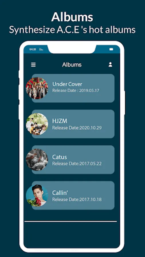 The A.C.E Lyrics, MVs & Wallpaper application includes images :
