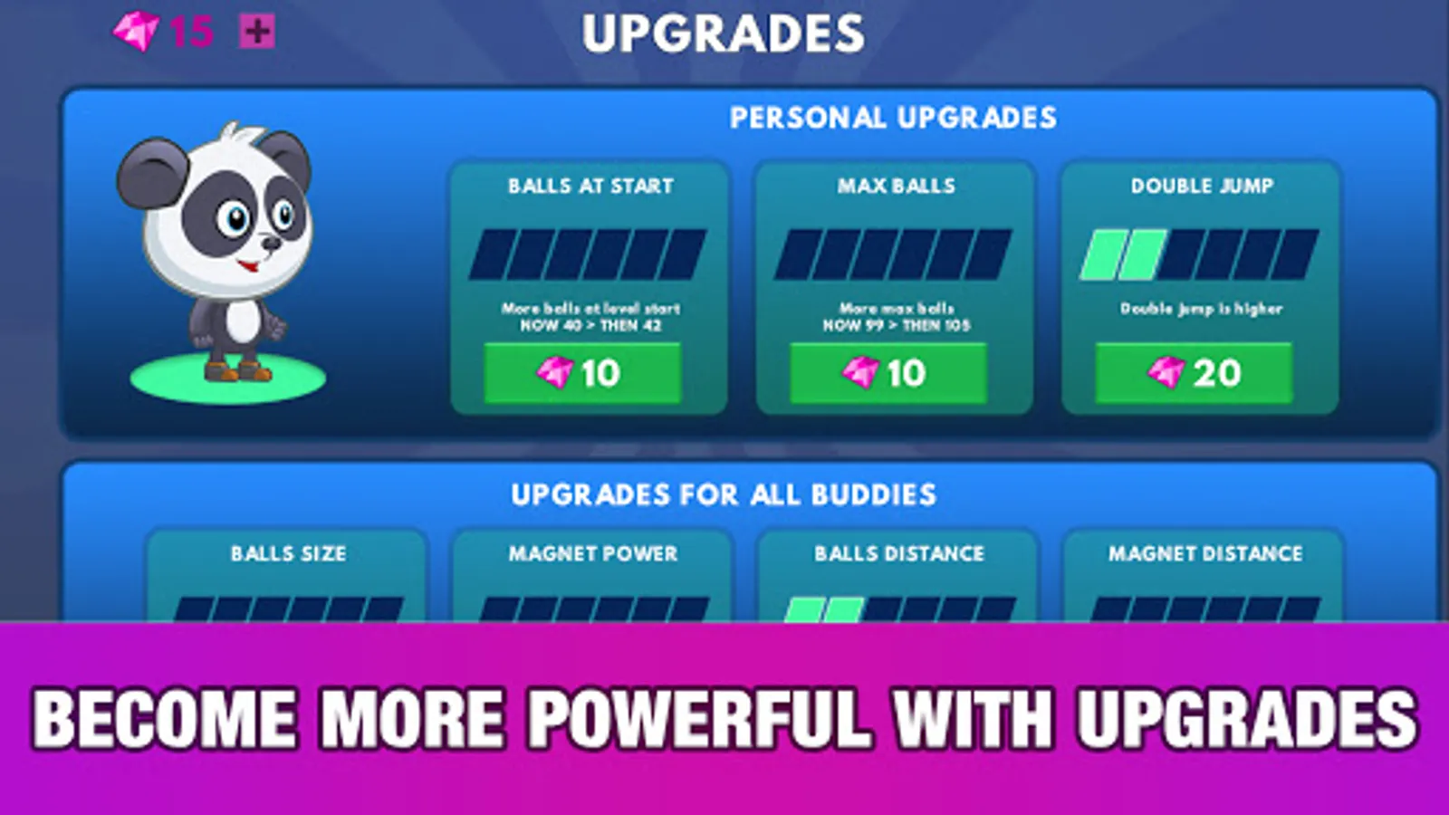 🔹 Buddy Jumper has over 50 levels. Collect more stars in order to unlock levels (some require a certain number of stars, others a certain number of blue stars).