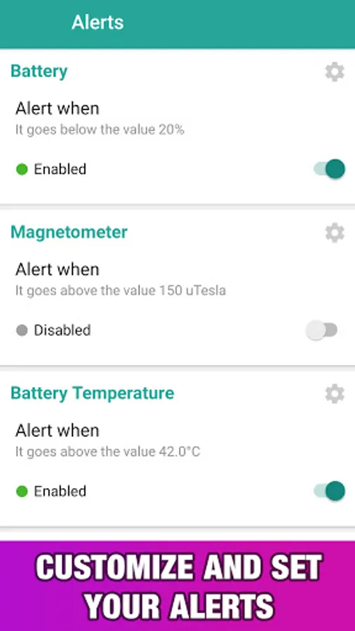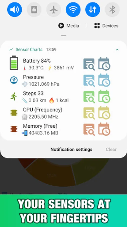 Sensor Charts is a powerful tool able to record automatically in background all sensors data and render it at your command in wonderful and colorful charts.