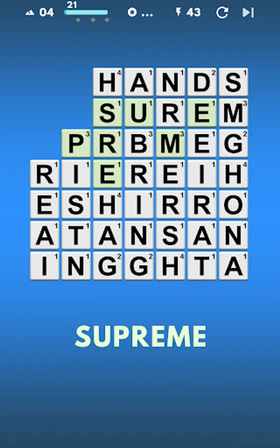 Find hidden words on the board or invent them with your imagination and the available letters. What level can you reach?