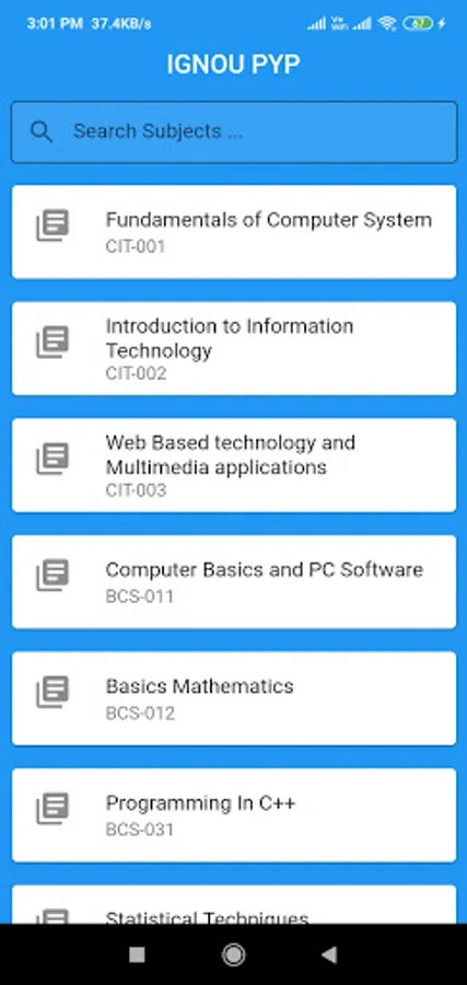 "IGNUOPYP" is an app where you can get previous year question papers for exam preparation, it has more than 1000+ subjects in both Hindi (if available) or English Language. You have to just search by using subject name, and it filter subjects according to it, instantly. its so simple