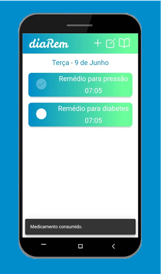 DiaRem: Medicine Organizer has a history where it is possible to check which medicines were consumed in previous days, being also useful for the elderly.