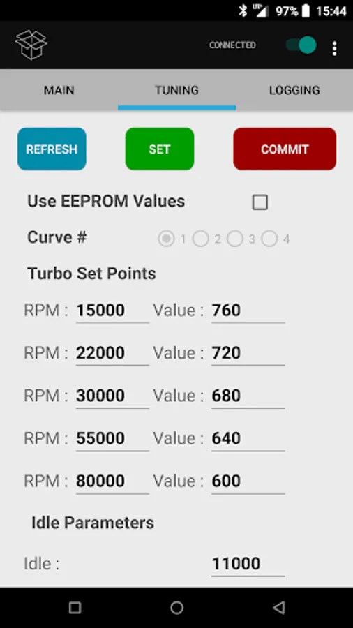 This is the tuning and communications application for the LBB. Enjoy tuning your turbo curve, or just monitor your turbo's size and shaft speed.