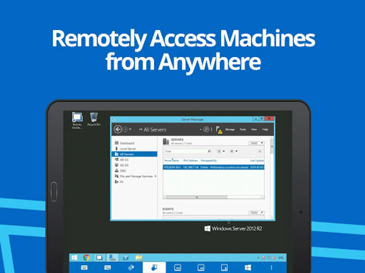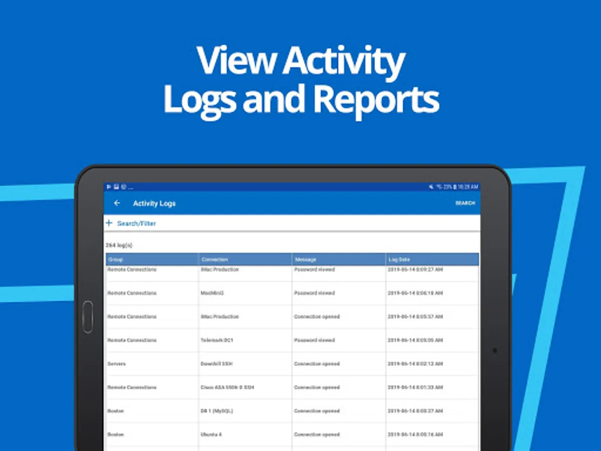 Remote Desktop Manager for Android is a free tool that enables access to all your remote connections and passwords. Used in combination with our desktop application Remote Desktop Manager Enterprise, you can connect to your centralized database and access all your data from anywhere.