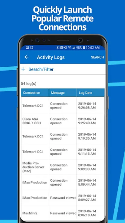 Once configured, you can easily launch a connection using a single tap and connect to your remote servers, virtual machines and other workstations.