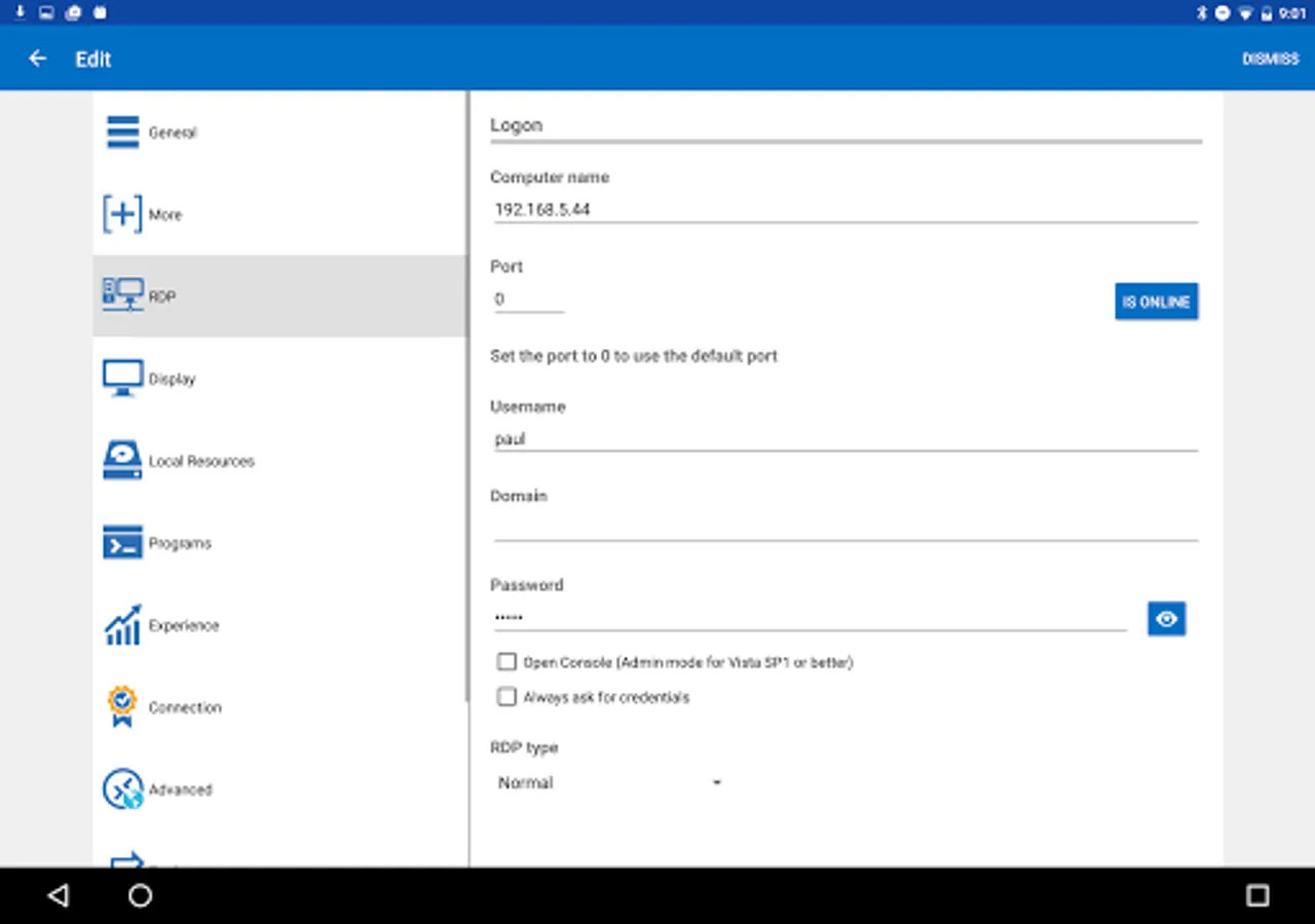 Along with remote connections, Remote Desktop Manager for Android lets you save and manage your passwords and credentials from your centralized database or your local XML file. Easily input your credentials and automatically login everywhere.