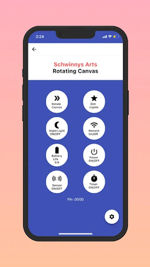 The Schwinnys Arts Rotating Canvas will be a product unit to display art on a diptych or triptych rotating wooden extrusion. The mechanical unit must be interoperable with the Schwinnys Arts mobile app. The app functionality includes Rotate Canvas, Dim Lights, Night Light On/Off, Remote On/Off, Battery Life %, Power On/Off, Motion Sensor On/Off, and Timer On/Off. The mobile app will be for the Apple and Android operating systems.