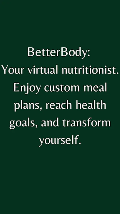 Discover BetterBody, your ultimate nutrition companion that revolutionises meal planning and healthy eating! Say goodbye to confusing diets and hello to personalised meal plans, seamless food logging, and your very own AI-powered nutritionist. BetterBody is designed to empower you on your journey to a healthier, happier life.
