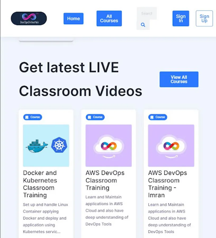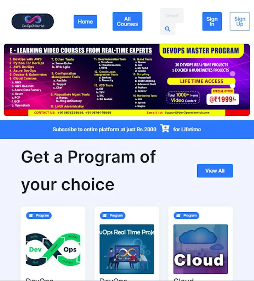 Devopsonlinehub.com is an E-Learning Portal designed for Professional with a wide range of Technical Courses such as DevOps, AWS, Azure, GCP, Docker and Kuberenetes with real-time projects