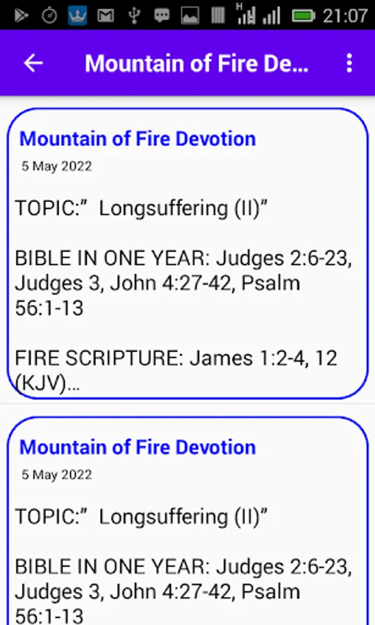 Mountain Of Fire and Miracles Ministries daily Devotion mobile App is a tool which provides an easy way to read your daily devotion on the go , it provides an easy to use interface which organizes the readings into calendar dates making it