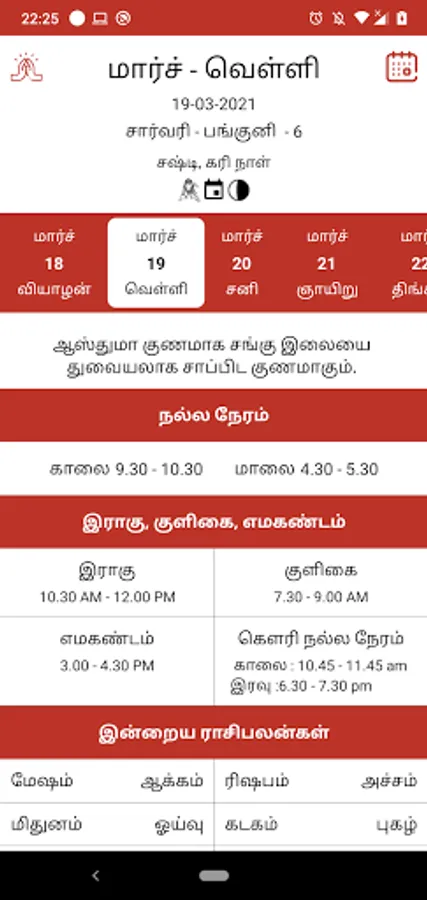✓ Auspicious Timings - Daily Nalla neram, Emakandam, Kuligai, Rahu kalam, Thithi & Yogam.