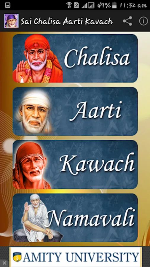 This application is a combination of Sai Chalisa, Sai Aarti and Sai Kavach.