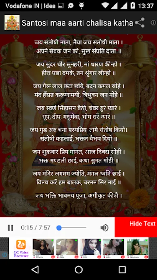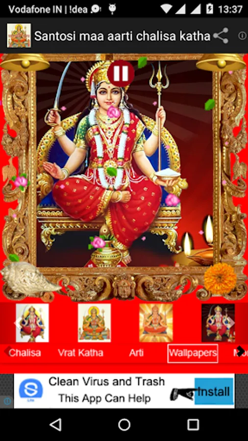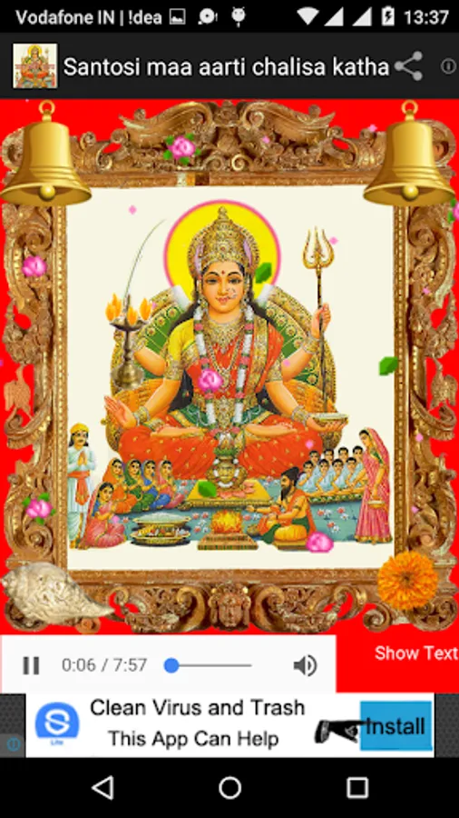 This application is a combination of Santoshi Mata Chalisa, Santoshi Mata ji ki Aarti and Santoshi Mata Vrat Katha