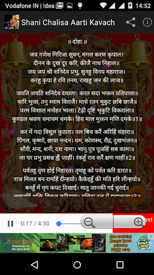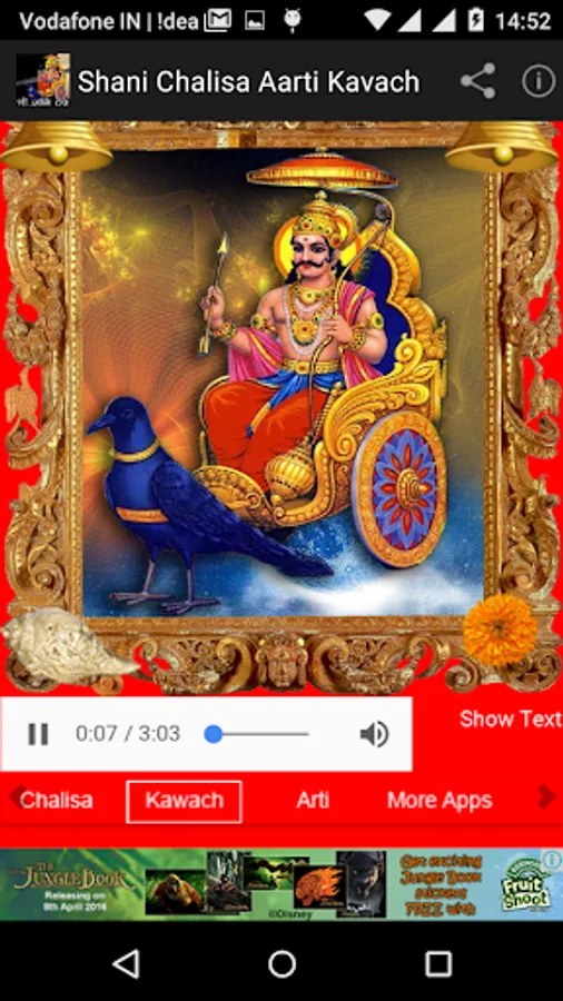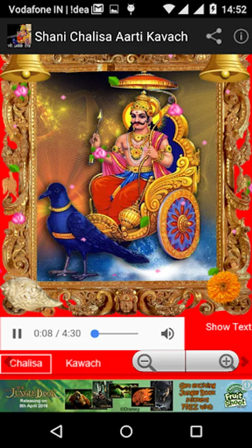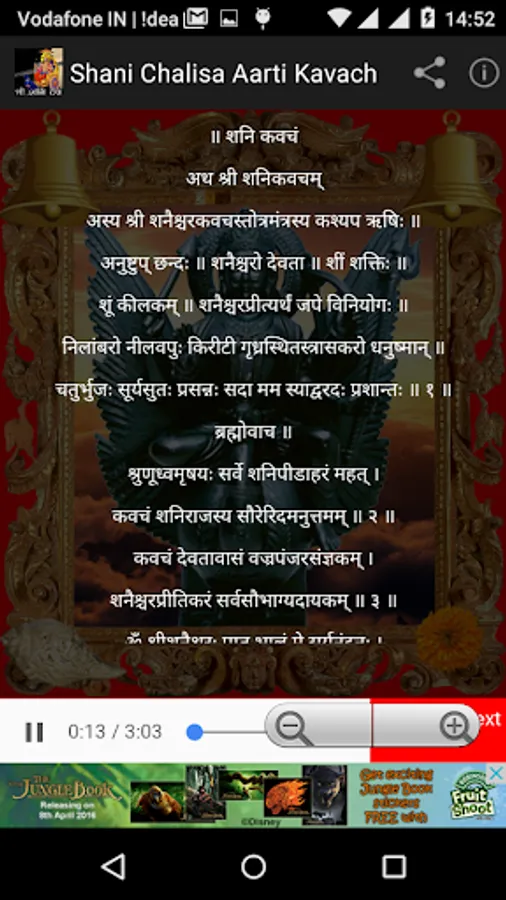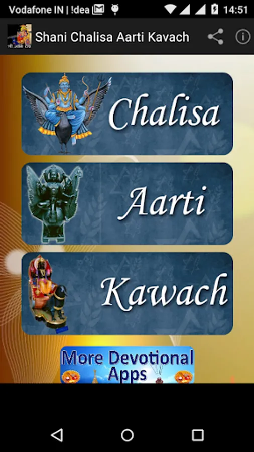 You will be happy to see such a nice combination in one single application with Shani Dev Chalisa,Shani Dev ki Aarti and Shani Dev Stotram in audible and text format.