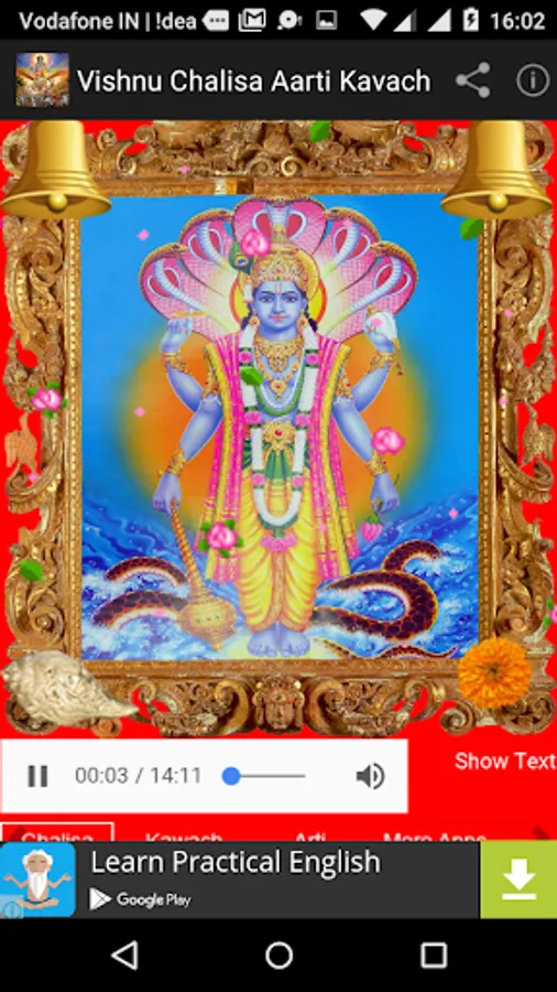 This application is a combination of Lord Vishnu Chalisa, Lord Vishnu ji ki Aarti and Lord Vishnu Kavach.