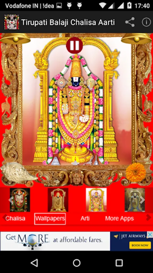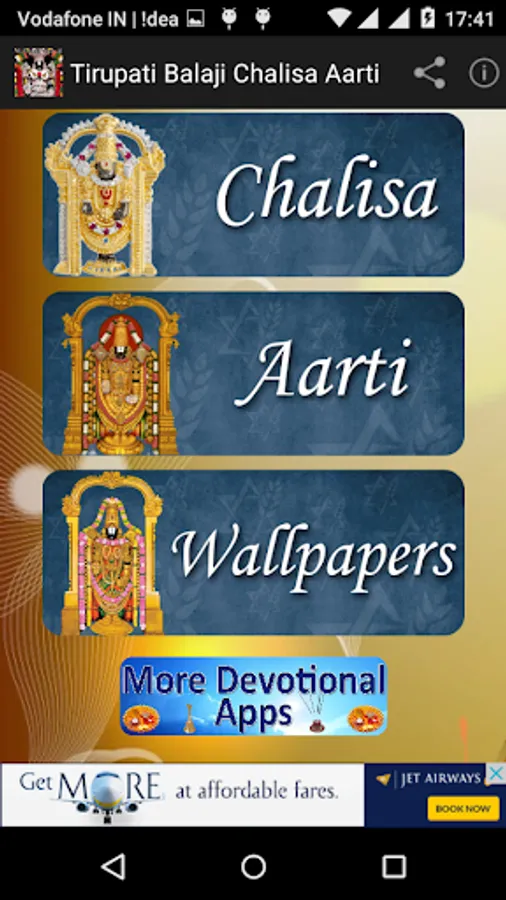 This application is a combination of Tirupati Balaji Chalisa, Tirupati Balaji ji ki Aarti and Tirupati Balaji Wallpapers.