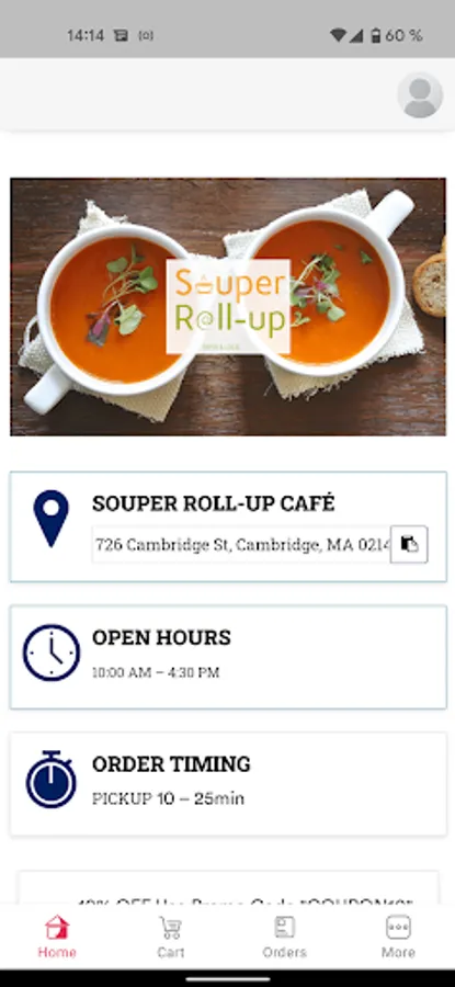 We offer fresh home-cooked meals at an affordable price. Enjoy our selection of gourmet soup and wraps by ordering from our app. Each day we offer a choice of 5 soups from our repertoire of 34 soups.