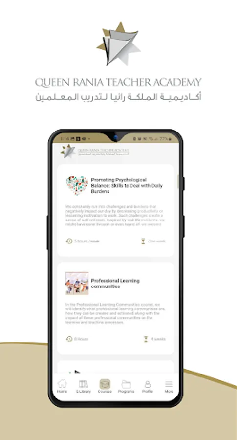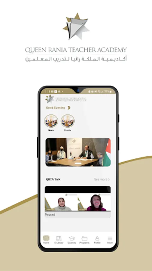 تطبيقنا مبتكر مصمّم لإحداث ثورة في طريقة تعلم الناس . فهو أداة مثالية للمتعلمين الذين يرغبون في التعلم بالسرعة التي تناسبهم ومن أيّ مكان في العالم . وفيه ستكون متابعاً لأخبار أكاديمية الملكة رانيا لتدريب المعلمين أولاً بأول مع هذا التطبيق يمكن للمتعلمين الأكاديميين والتربويين الوصول إلى مجموعة واسعة من الموارد التعليمية, بما في ذلك المقالات , الانفوجرافيك , والمواد الدراسية ,وكلها مصمّمة لتعزيز تجربة التعلم الخاصة بهم..