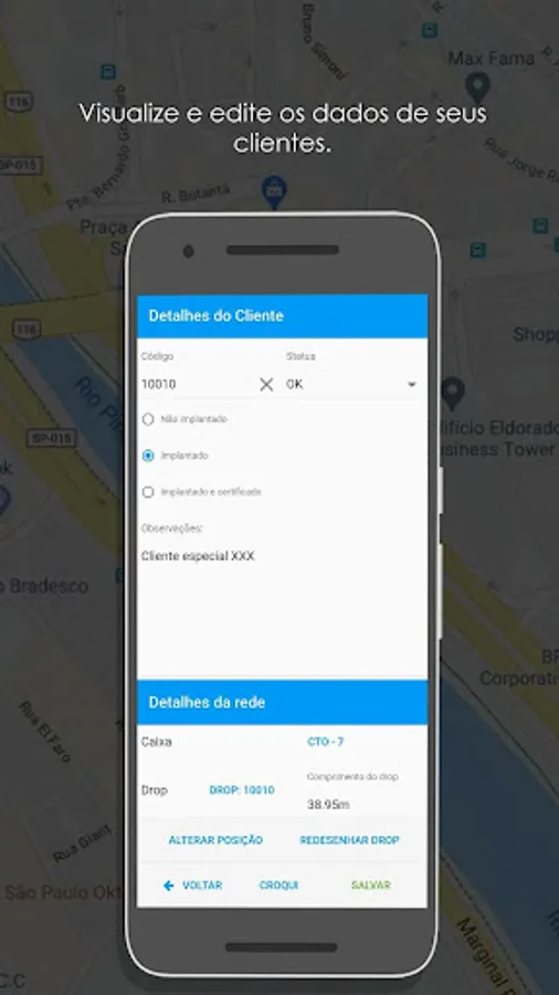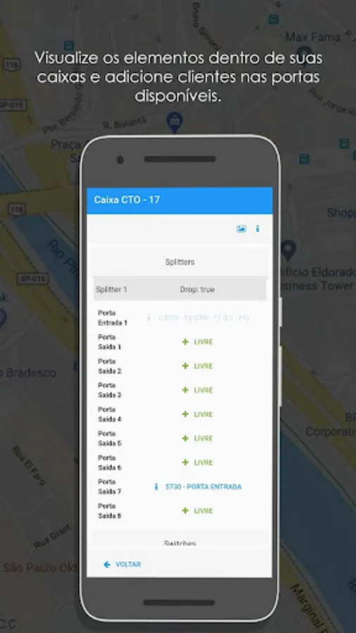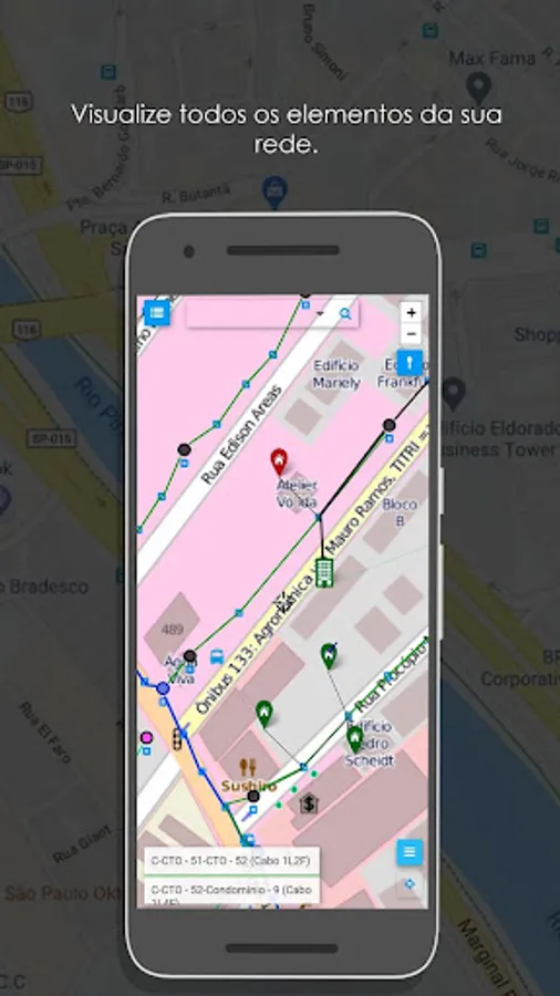 OZmob is the OZmap extension on your mobile. With it you can view the elements of your network and their characteristics, being possible to change deployment states and observations, as well as add customers and posts. It also allows you to view customer sketches and box diagrams, enabling an excellent field experience.