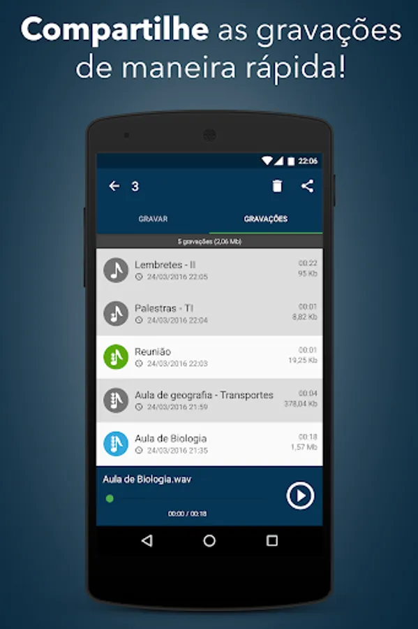 • Listen to your recordings in the application itself, from a Player designed to be fast and convenient.