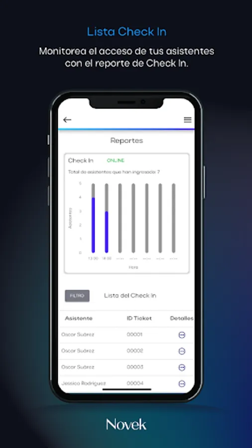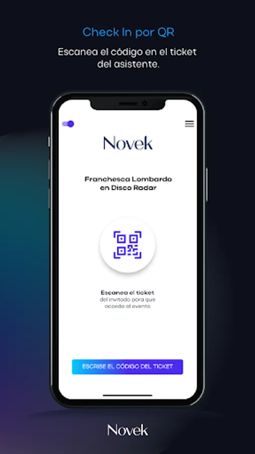 Novek is an application that speeds up the entry to your events, checking in by scanning the QR code that comes on the event ticket.