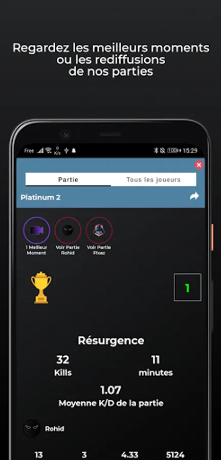 - Receive real-time notifications when one of the players makes a top 1 on Warzone or Fortnite.