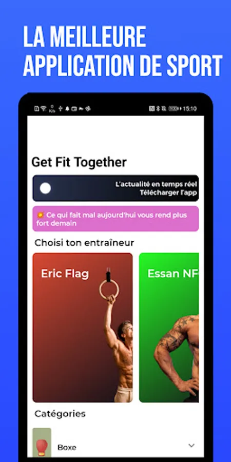 This app gathers all the sports programs of your favorite sports/wellness youtubers to choose a session in the blink of an eye!