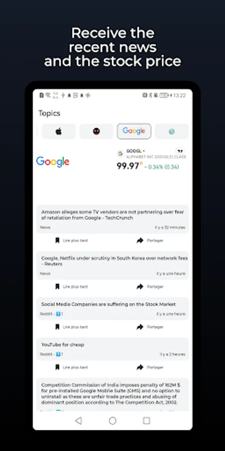 - Access the news and stock market of the different Topics