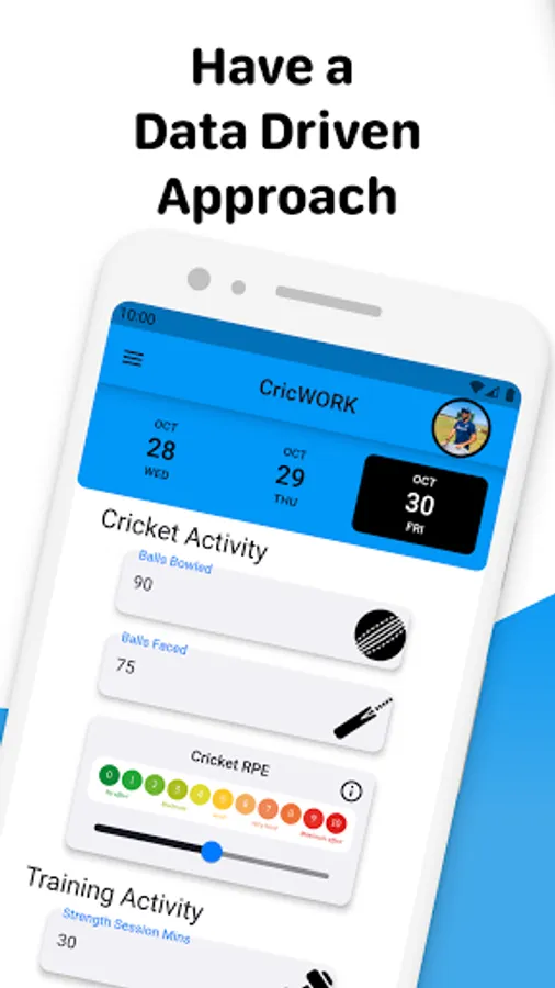 Log your Batting and Bowling Workloads, Strength and Running Sessions along with Sleep Hours, DOMS, RPE, each Day. This data can help your Physio and S&C Trainers to better assess your Fitness and determine your future programs. Your Coaches can monitor your Workloads as you progress to a Professional Team.