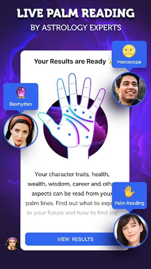 You have many questions and unresolved life situations. It's challenging to make the right decisions about things that are very important for you. Palmistry & Horoscope is the only astrological app that provides answers to so many questions you have in stock. Our hand readers and hand analysts will be happy to read your palm lines and provide detailed and personal reading results. You only need to take photos of both left and right palms, get an expert assigned to you, wait for some time, and get notified when the reading is done.