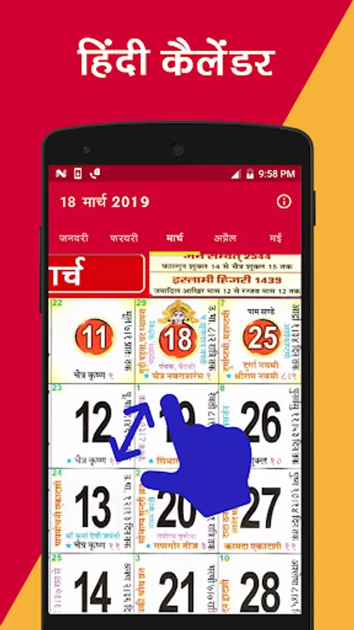 Now you can carry a whole calendar/panchang in your pocket with below additional or unique features: