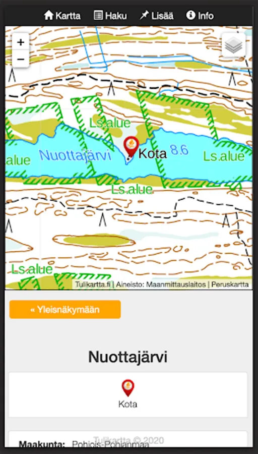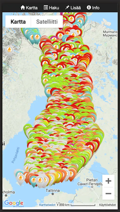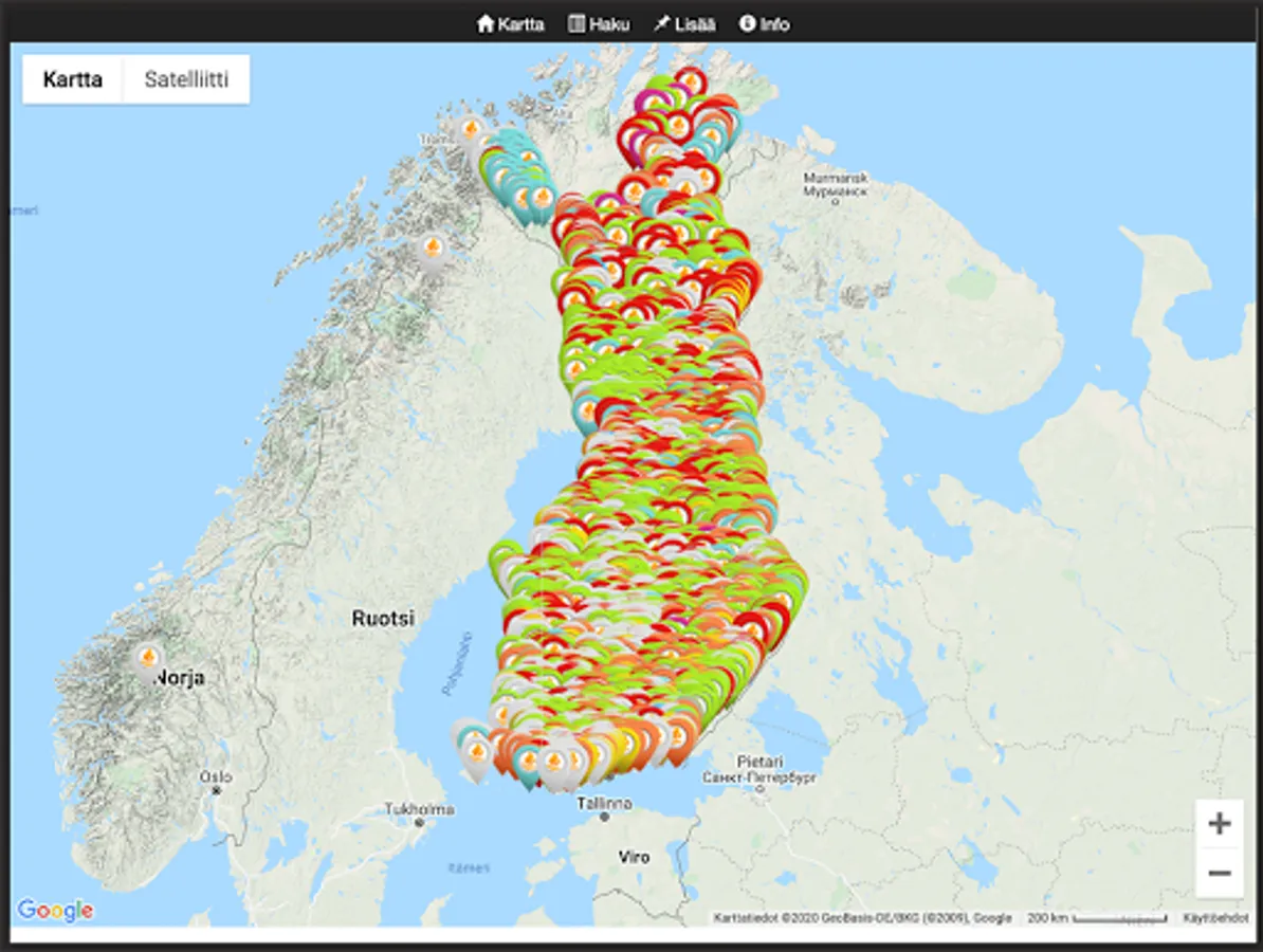 The fire map provides information on Finnish fire sites and their locations. The service can also store information about individual campfire places in the reservation room.