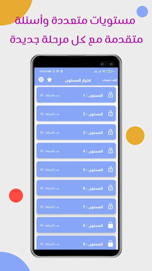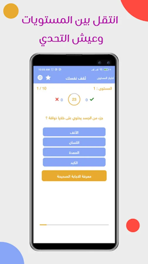The game contains a huge amount of general questions, and cultural, religious and political questions, where "Educate yourself" includes thirty stages, each stage has 10 questions