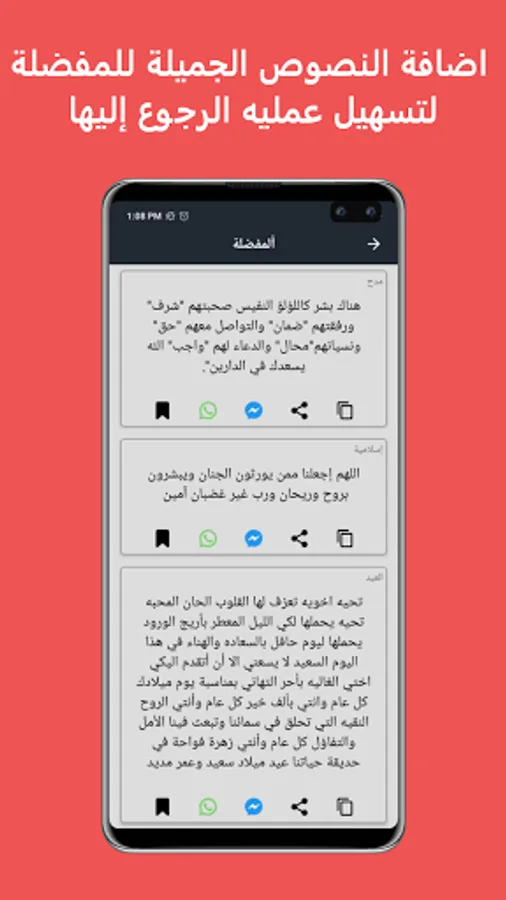 * اضافة رسائلك الخاصة للتطبيق وكن مميزا